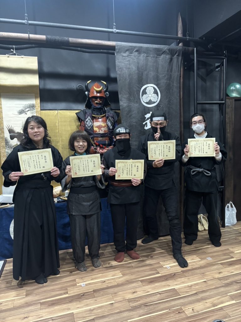 小規模ですが遠方からの参加もあり、参加者の手裏剣に対する情熱や真剣な取り組みを感じる大会でした。大会ルールでは九字護身法の加点があり、九字の印を結ぶ指の震えなどが見て取れ、緊張感が伝わってきました。日頃の修練の成果が出た方、課題を認識した方など様々と思います。